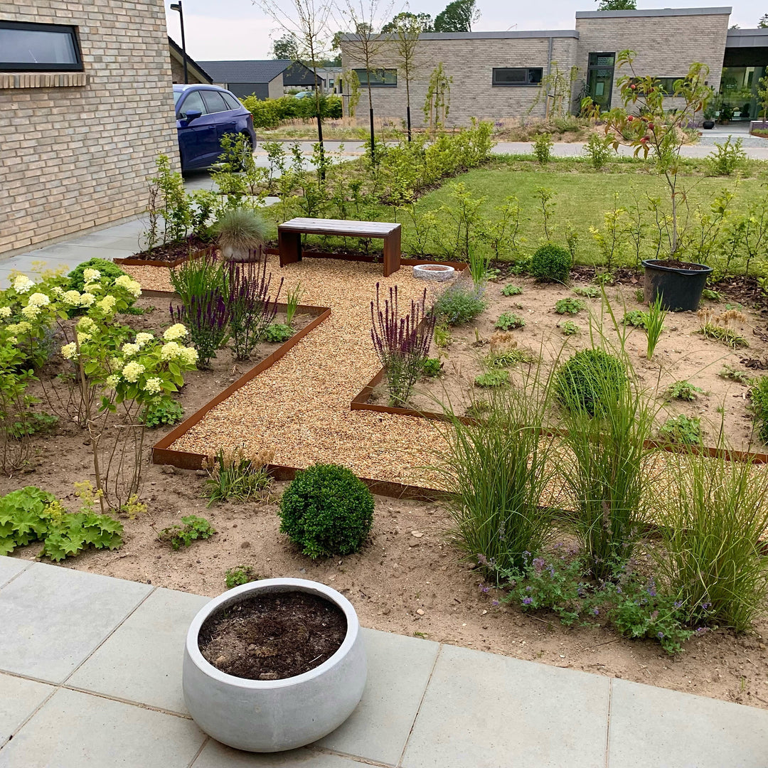 Borderrand van 2 mm cortenstaal met maatwerk.