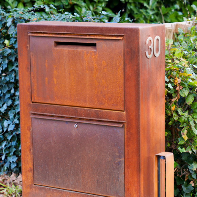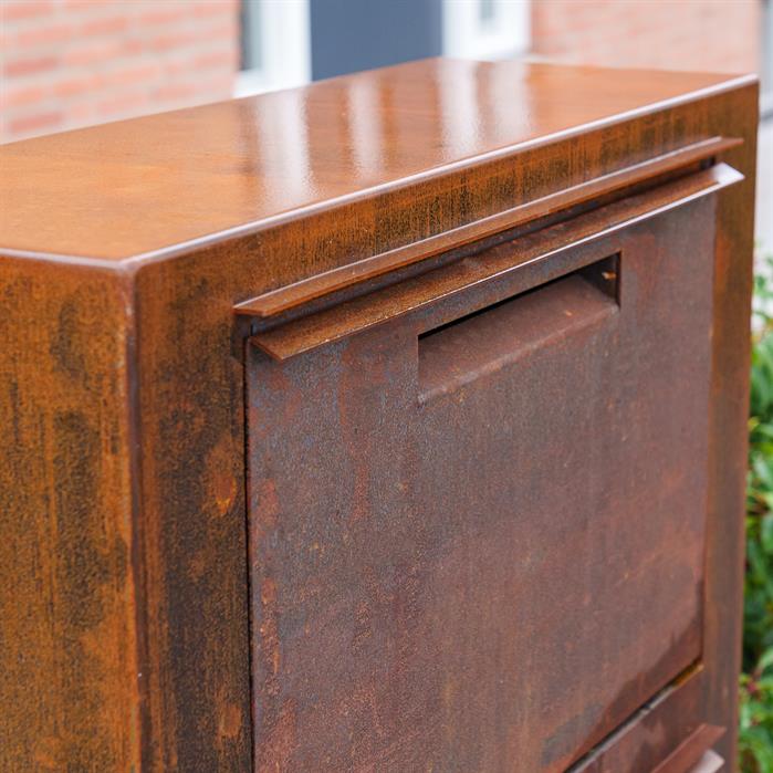 Brievenbus van cortenstaal, brieven en pakketten, groot