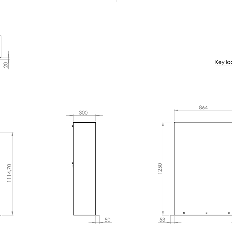 De brievenbus is 87 cm breed (vooraanzicht), 30 cm diep, 125 cm hoog en weegt 110 kg.