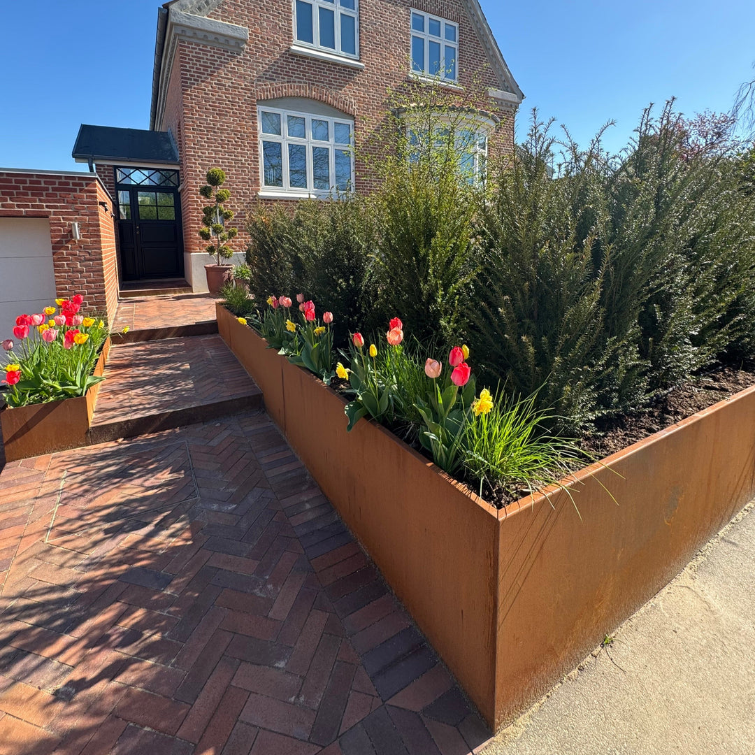 Velen kiezen voor cortenstaal vanwege de natuurlijke roestpatina, die een warme, natuurlijke maar ook moderne uitstraling geeft die past bij alle huizen, bedrijven en gebouwen. De karakteristieke patinalaag beschermt de nieuwe keerwand tegen corrosie en doorroesten. Dat betekent dat je vele jaren plezier zult hebben van de cortenstaal keerwand en dat je, in tegenstelling tot keerwanden van alternatieve materialen, niet veel middelen nodig hebt voor het onderhoud ervan.