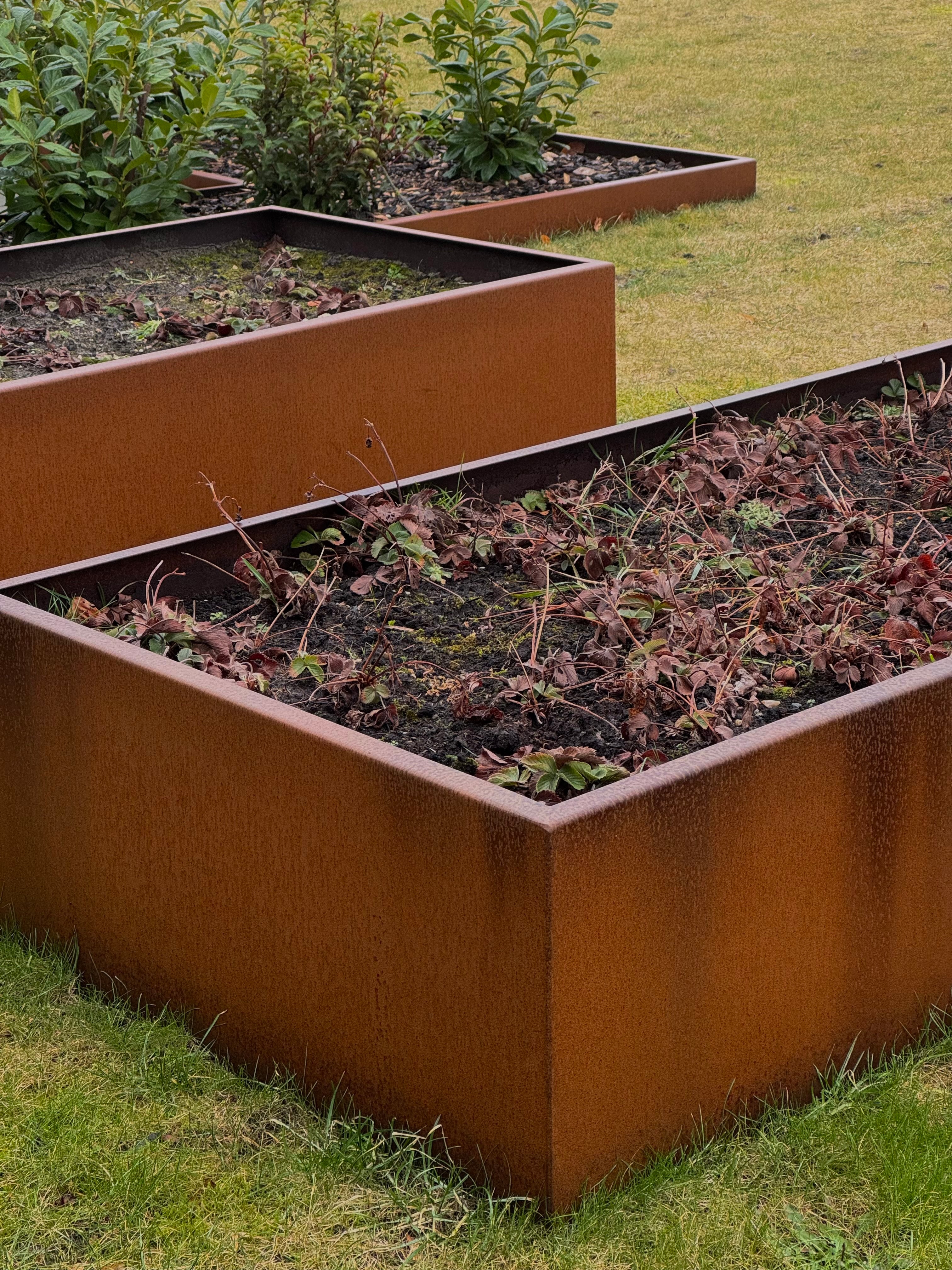 • Voor onze plantenbakken gebruiken we altijd minimaal 3 mm cortenstaal.