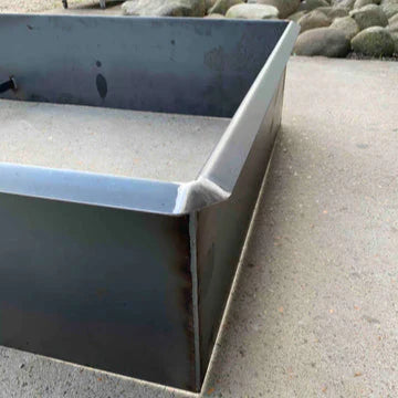 Alle plantenbakken hebben volledig gelaste hoeken, wat een robuuste en duurzame structuur garandeert. Onze plantenbakken worden met de hand gelast door onze ervaren smeden. Als u een plantenbak met bodem bestelt, wordt de bodem nooit volledig gelast om ervoor te zorgen dat water kan wegvloeien. We boren ook drainagegaten. De afbeelding toont een voorbeeld van een volledig gelaste naad, de lasnaad zal moeilijker te zien zijn als de plantenbak gaat roesten.