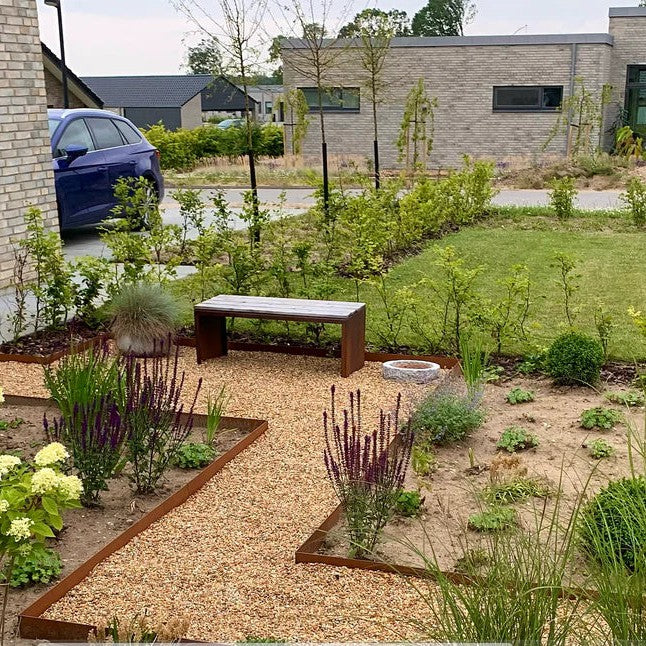 Met deze bank van cortenstaal krijg je een zitplaats die zelfs storm weerstaat (23 kg) en jarenlang meegaat bij weer en wind. Je hoeft de bank niet in de winter op te bergen.