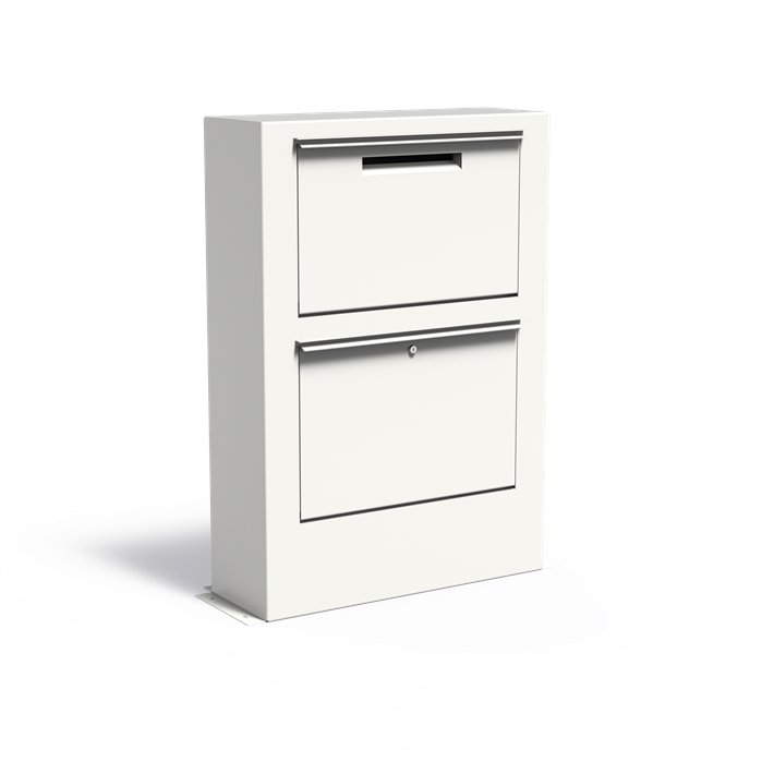 De brievenbus heeft een brievenklep aan de voorkant en een deksel aan de bovenkant dat open kan. Aan de achterkant bevindt zich een deur met slot, waar zowel post als pakketten worden verzameld. De brievenbus is gemaakt van wit gelakt aluminium (RAL9016, mat). Op verzoek kan het slot worden vervangen door een ander model. De bodem aan de binnenkant is van geperforeerd metaal, zodat pakketten niet in regenwater blijven liggen. Er is ook een ingebouwd diefstalbeveiligingssysteem aanwezig.