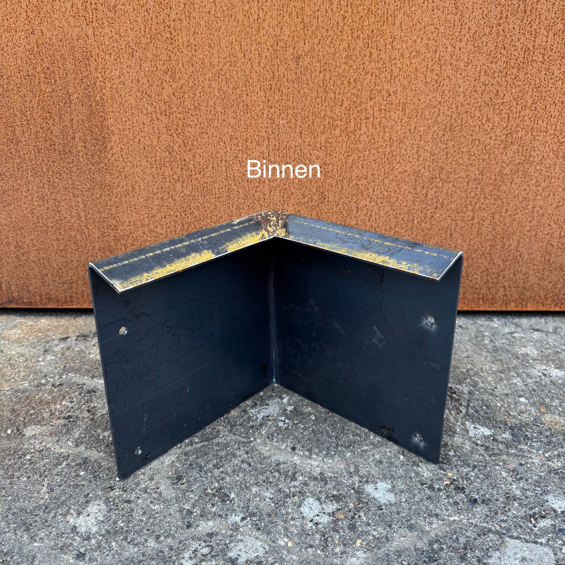 Hoek voor onze borderranden met slakkenrand. Gemaakt van 3 mm cortenstaal, zodat het perfect past bij onze borderrand (roest na korte tijd). De hoek wordt verbonden met de borderrand via onze verbindingsstukken. Vergeet niet om rechte verbindingsstukken bij te kopen, zodat je de borderrand en hoeken kunt samenvoegen. Bij aankoop van verbindingsstukken worden de benodigde bouten en moeren meegeleverd.
